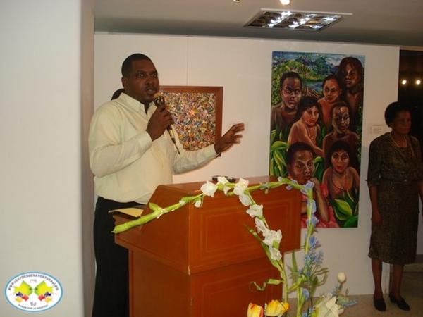 Por su parte el Licenciado Ezequiel Mosquera en representación de Comfamar expresó que esta exposición es un verdadero honor, invitó igualmente a detenerse en cada una de las obras y analizar que cada pincelada como un conjunto y es un fruto parido de su alma y de la visión de cada uno de los maestros, agregando al final de Buenaventura debe ser conocido por todos sus bienes culturales.