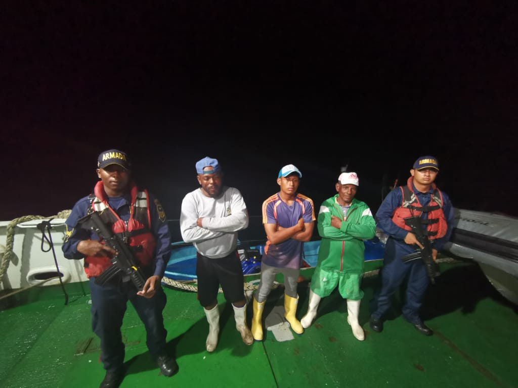 Los tres hombres fueron sorprendidos en la zona marítima depresión Yanaquina del Pacífico sur, cerca de Ecuador, cuando lanchas de la Armada de Colombia abordaron la embarcación Bigla, tipo Flipper, en cuyo interior los infantes de marina encontraron 300 kilogramos de pescado, con mínimo estándares de conservación, refrigeración, y almacenamiento, lo mismo que 150 líneas de pesca con anzuelo.