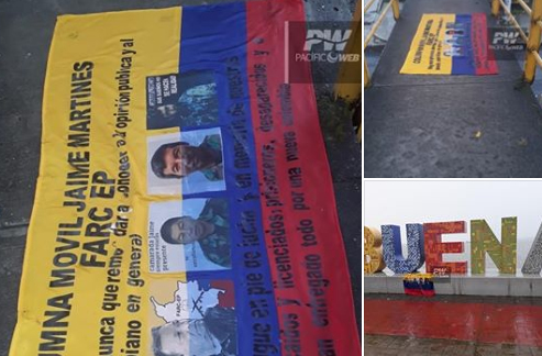 Inquietud ha causado en la ciudadanía la aparición de banderas de Colombia en el puente peatonal del barrio John F. Kennedy y en las letras ubicadas en el Malecón Bahía de la Cruz, en la que se hace referencia a presencia de las FARC en Buenaventura.