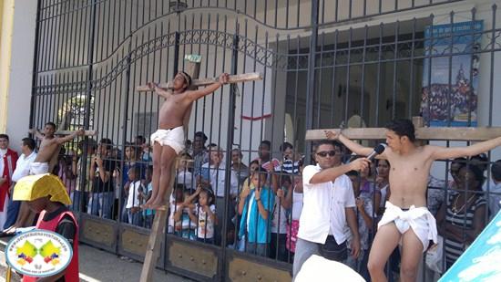 Una de las iglesias donde se presentó mayor afluencia de fieles católicos, fue la Catedral de san Buenaventura, donde el grupo juvenil “JUVE” representó en vivo la pasión y muerte de nuestro señor Jesucristo.