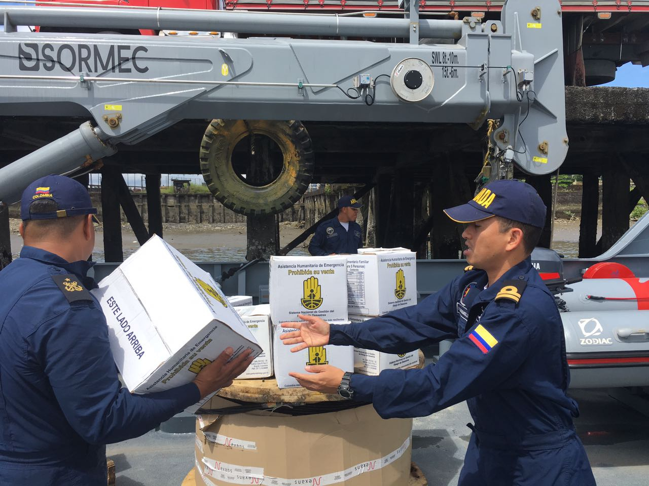 Los kits, que constan de alimentos no perecederos, elementos de aseo y frazadas, entre otros elementos, serán distribuidos por el personal militar entre las comunidades de Bahía Solano y Nuquí; siendo estas las áreas que sufrieron mayor afectación por las inundaciones.
