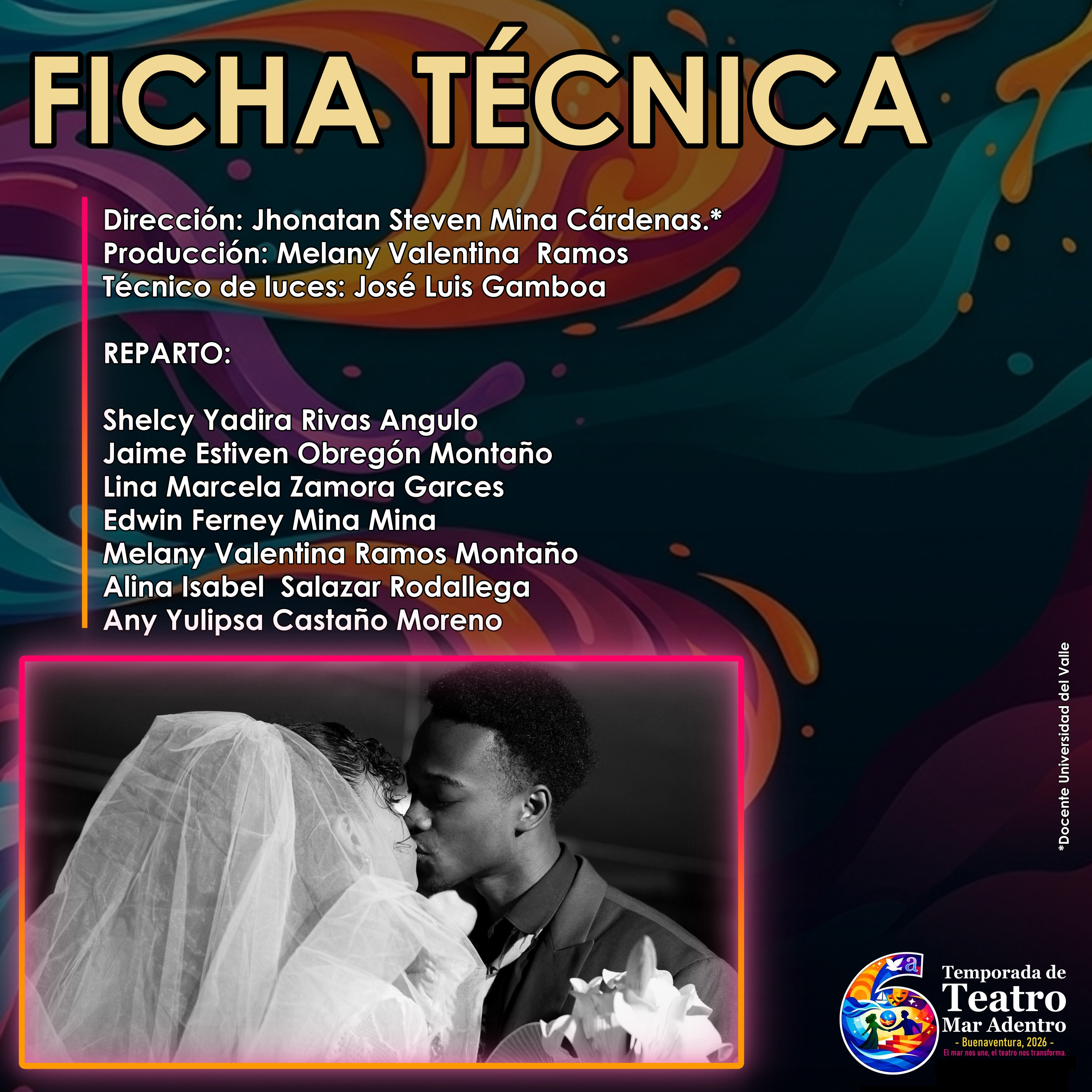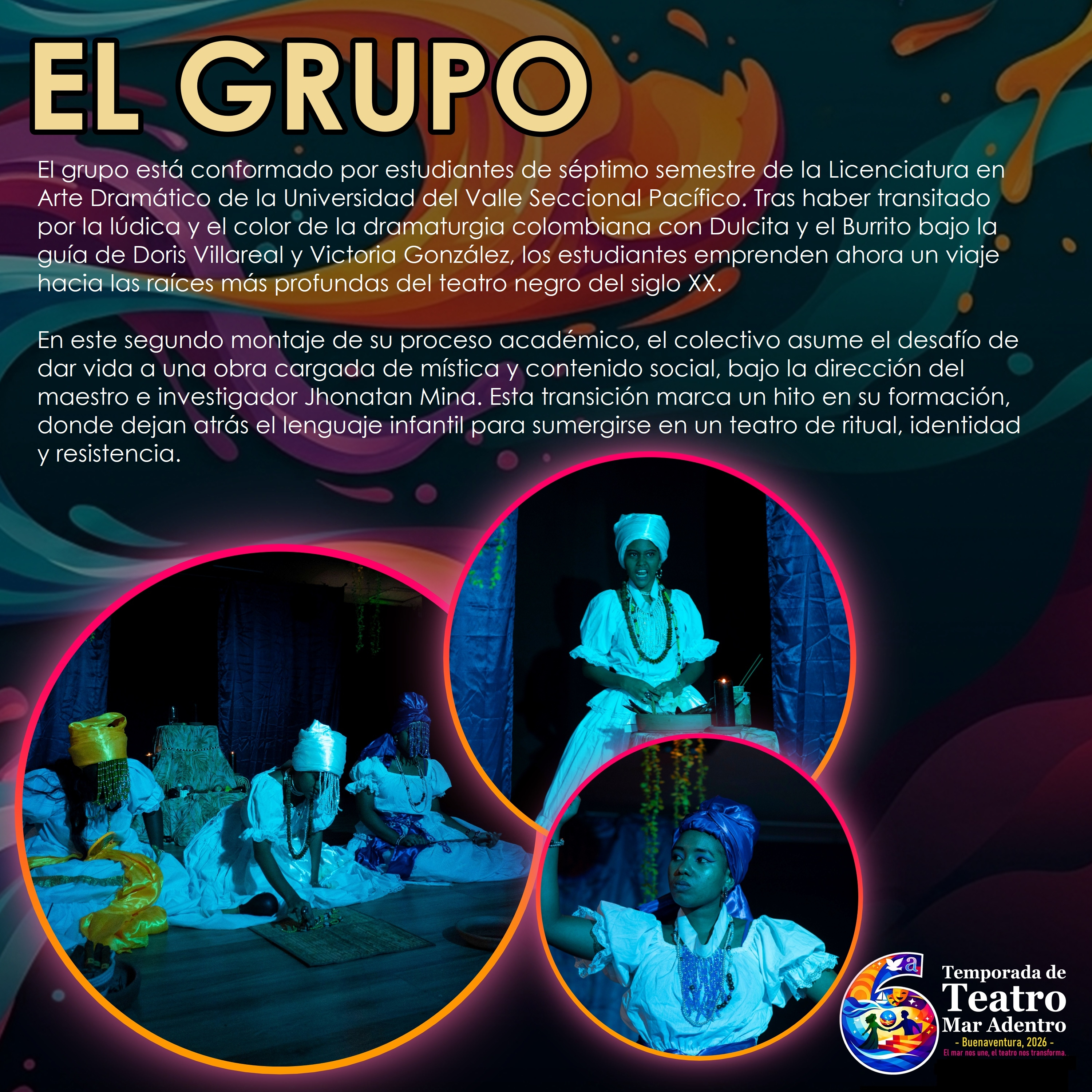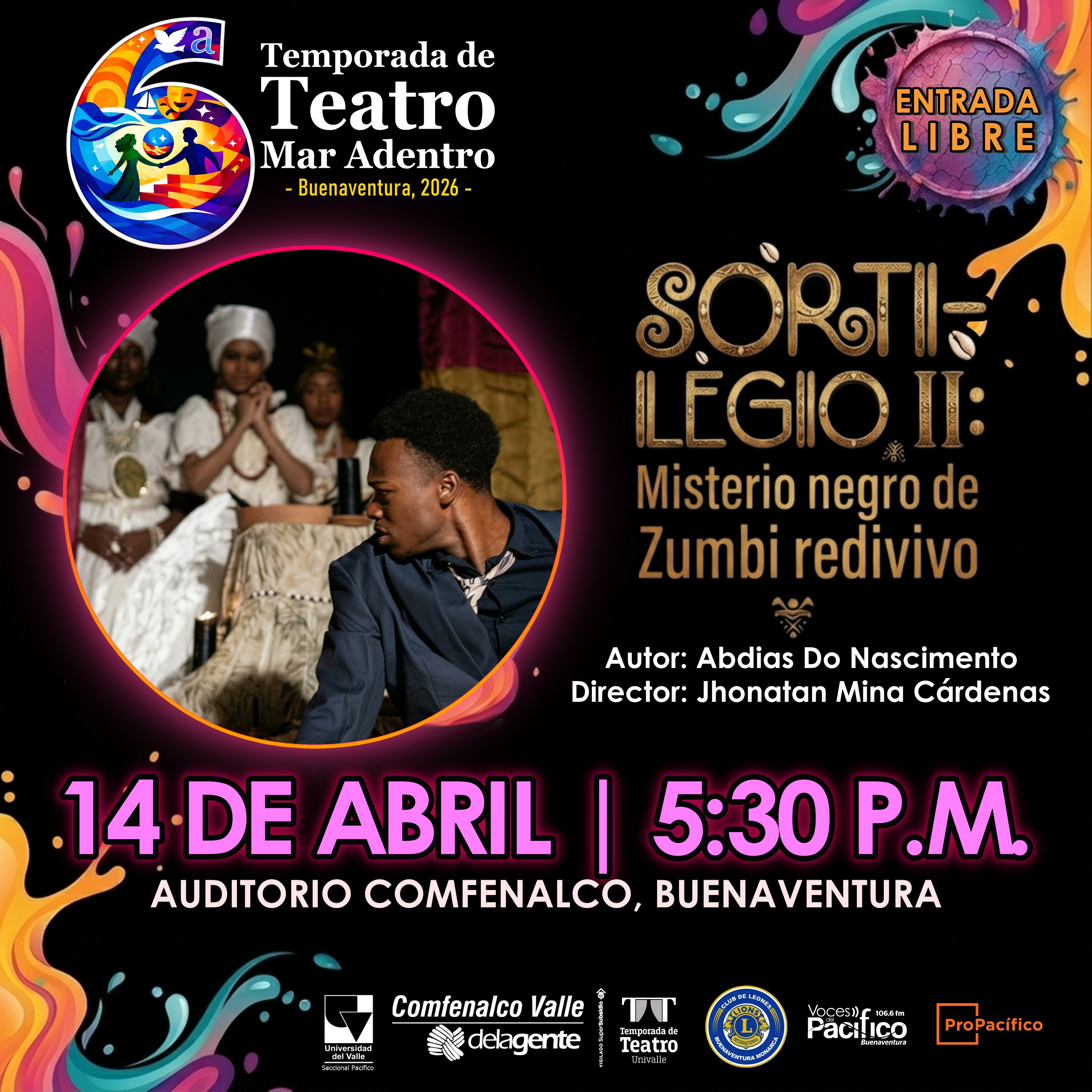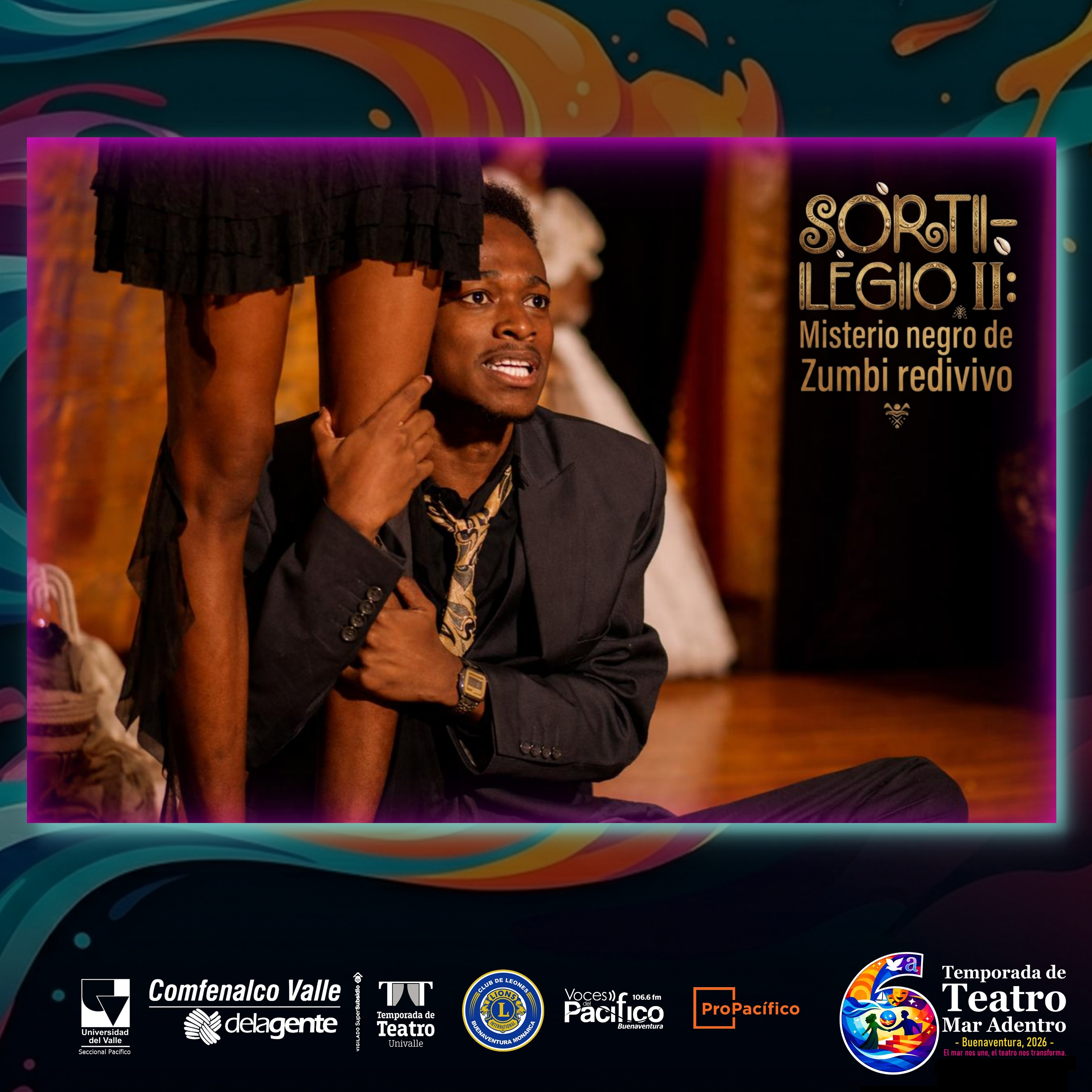 La VI Temporada de Teatro “Mar Adentro 2026” es un esfuerzo conjunto liderado por la Universidad del Valle seccional Pacífico, y Comfenalco Valle Delagente, con el valioso apoyo de ProPacífico y el Club de Leones Monarca de Buenaventura.