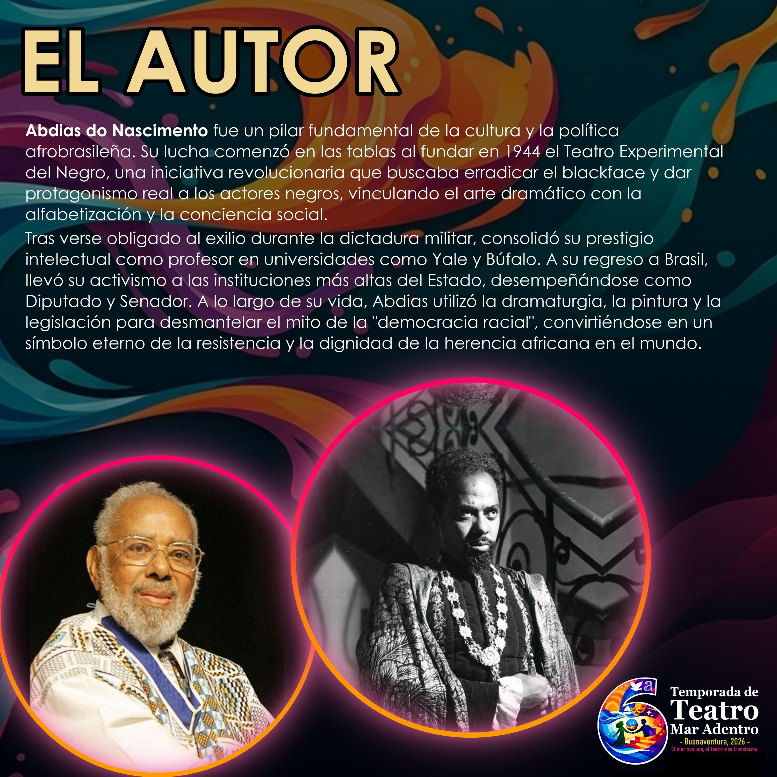 Bajo la dirección del maestro e investigador Jhonatan Steven Mina, el grupo de séptimo semestre de la Licenciatura en Arte Dramático de la Universidad del Valle, Seccional Pacífico, asume un reto de profunda madurez artística. “Sortilegio II” es una obra cumbre de Abdias do Nascimento, figura icónica de la resistencia afrobrasileña.