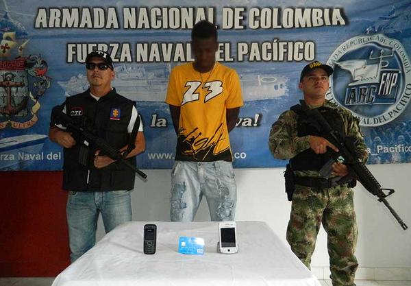 En las últimas horas en la ciudad de Bogotá, en desarrollo de la operación conjunta “Sable” entre tropas de la Armada y el Ejército Nacional en coordinación con personal de la Fiscalía, se logró la captura en flagrancia del sujeto Edwin Ferney Hernández Riascos, conocido como alias “Juanchope”, en instantes en que recibía el pago producto de una extorsión a una familia de Buenaventura beneficiaria del programa Familias en Acción.