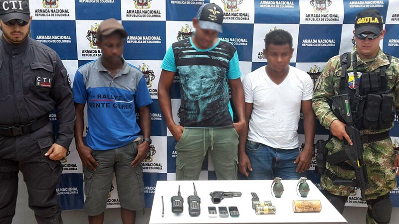 La captura de los tres sujetos se logró en una operación de control fluvial en la vereda Nerete. En el lugar tropas del Gaula Militar Tumaco y del Batallón de Infantería de Marina No. 15 junto con personal del Cuerpo Técnico de Investigación sorprendieron a los tres sujetos cuando intentaban abandonar el lugar.