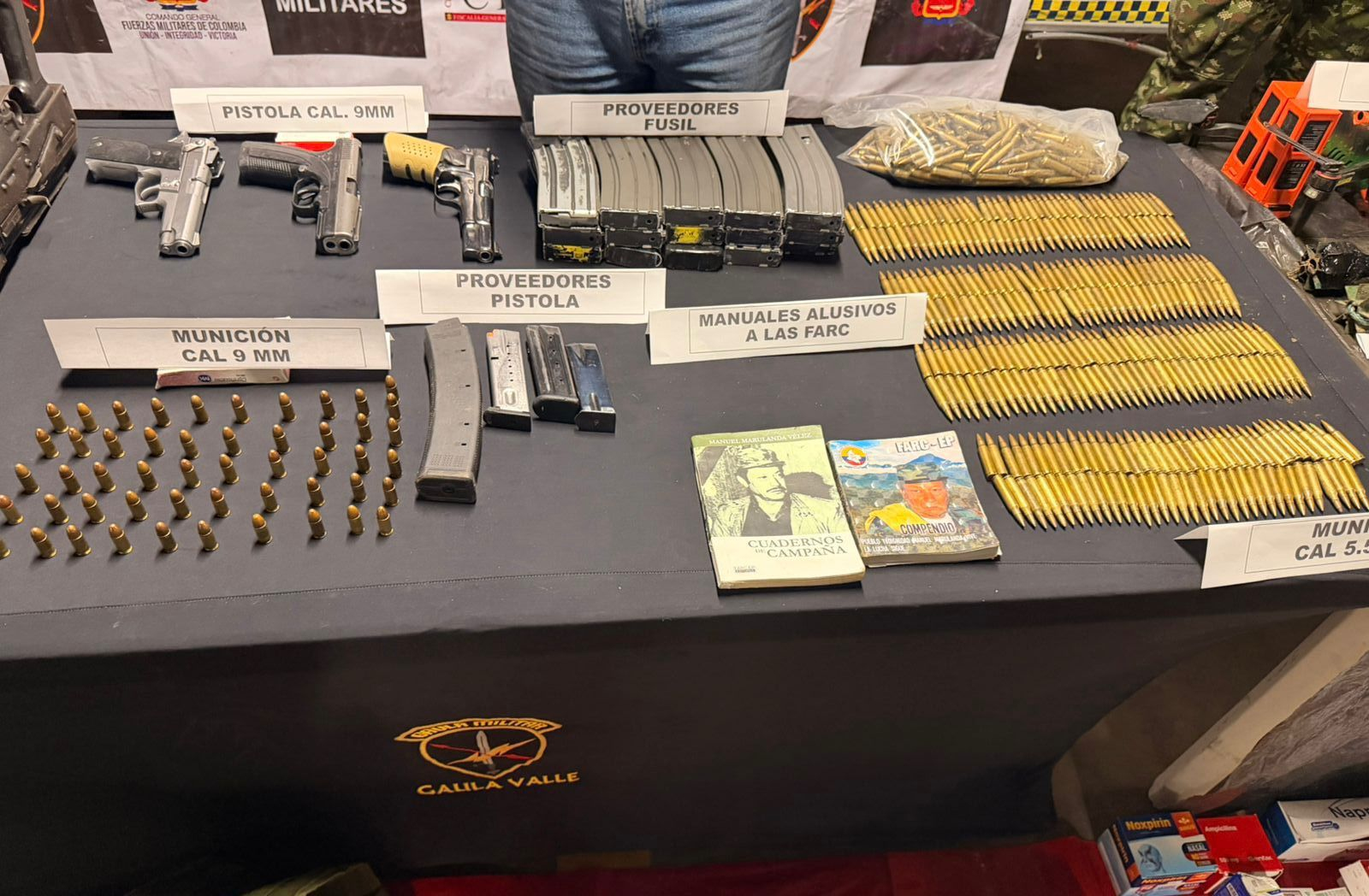 El general Juan Odúber Rendón, comandante de la Tercera Brigada del Ejército, detalló el alcance del material bélico decomisado. “A esta estructura se le pudo incautar cinco fusiles, tres pistolas, abundante material de guerra y proveedores, un dron con granadas explosivas, granadas de fragmentación, ocho celulares y lo que tiene que ver con material técnico para la investigación”, explicó el alto mando militar.