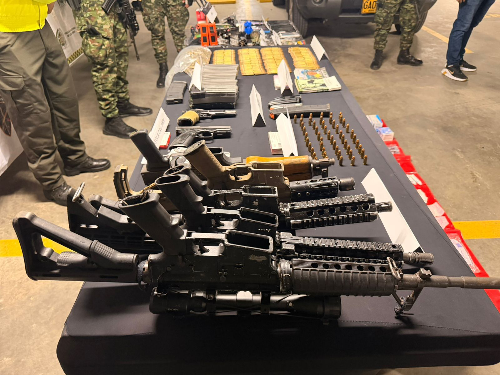 Los capturados y los elementos incautados fueron trasladados para su judicialización bajo cargos relacionados con fabricación, tráfico y porte de armas de fuego y municiones de uso privativo de las Fuerzas Armadas.