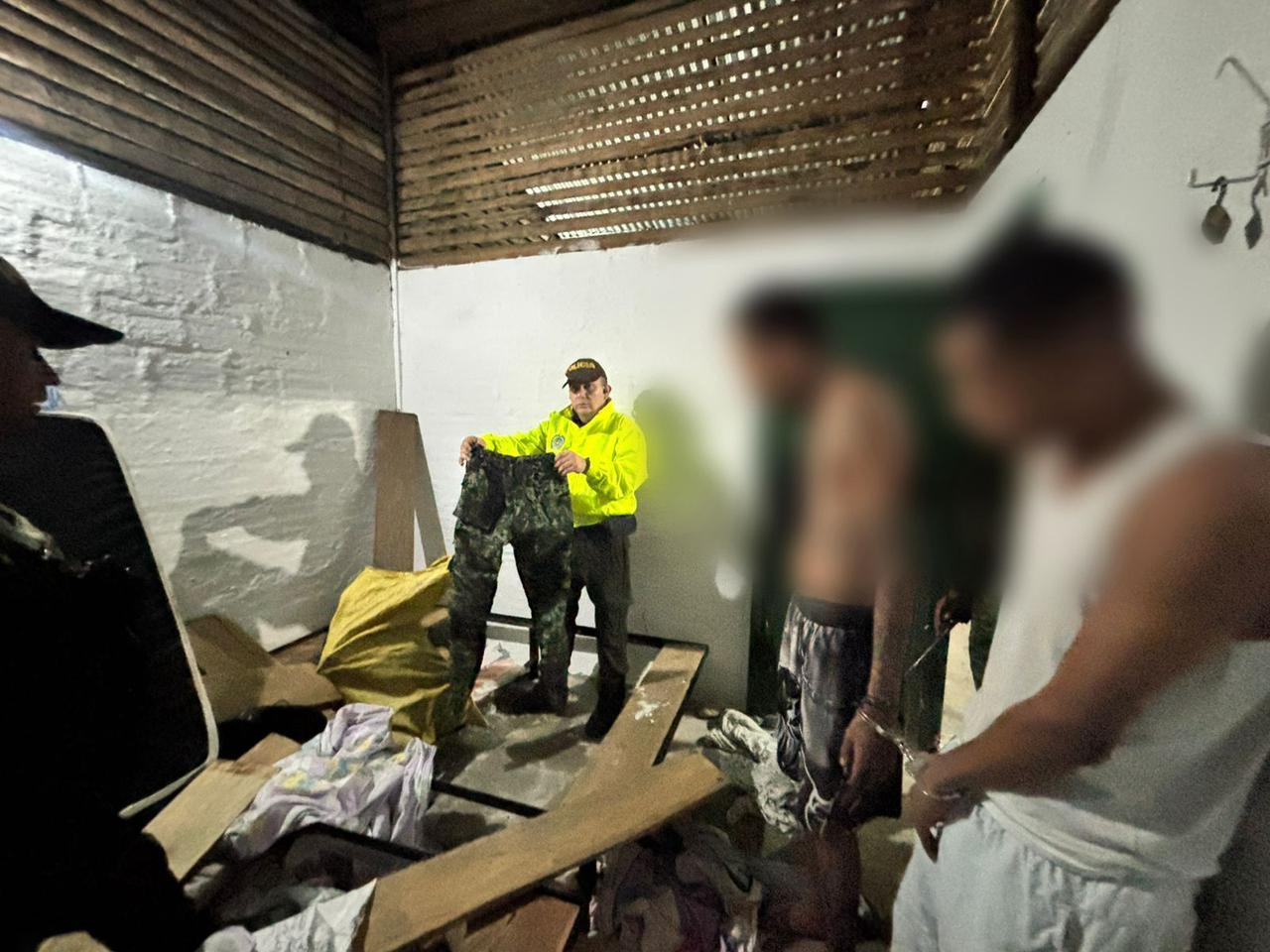 Durante el procedimiento, las autoridades incautaron dos fusiles, un revólver, siete proveedores, una granada de fragmentación, munición de diferentes calibres, chalecos tipo arnés, botas y uniformes de uso privativo de estructuras armadas ilegales.