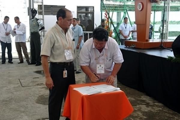"Una urgencia es que aquí se vea en este tramo la ejecución de obra muy rápidamente", señaló el Presidente Uribe, al pedirle a Carlos Alberto Solarte, quien firmó como representante del Consorcio ECC, que se comprometiera públicamente con los plazos del proyecto.
