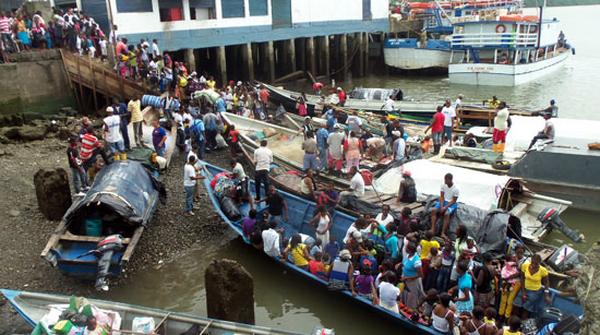 Momentos en que los nativos de Mayorquín abordan las embarcaciones tipo