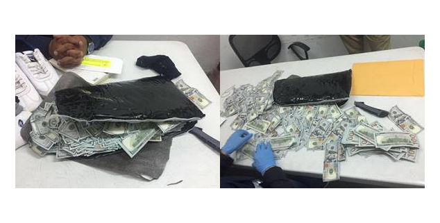 Una vez detectados los dólares en el maletín de mano del pasajero fue ingresado a la Sala de Conteo donde se estableció que ingresaba la suma de USD$ 202.800 en billetes de 100 dólares, camuflados en un sobre compuesto por espuma de látex y plástico de color negro, para evadir su detección por parte de la autoridad aduanera.