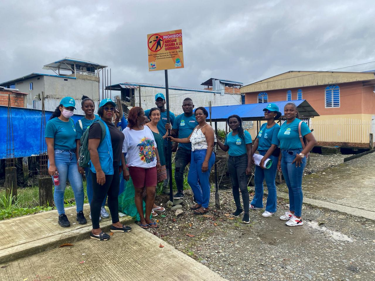 En la fase de intervención, se instalaron señaléticas ambientales en varios de los barrios priorizados con mensajes orientados a la protección de los cuerpos de agua y a la correcta disposición de los residuos. Adicionalmente, en sectores como María Eugenia se ubicaron pasacalles pedagógicos para reforzar el compromiso comunitario con la prevención de emergencias y la reducción de contaminación.
