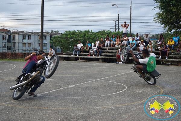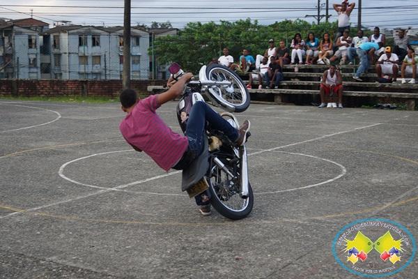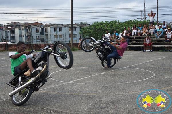 Como sorpresa se presentaron las acrobacias en motocicletas de un grupo de jóvenes de la ciudad.