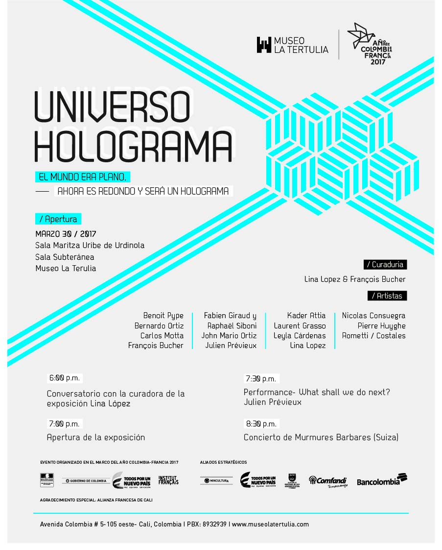Basada en estas preguntas, y en el marco del Año Colombia-Francia 2017, llega al país ‘El Universo Holograma’, una exposición que presenta a un grupo de artistas contemporáneos cuyo trabajo abre varias perspectivas sobre estos problemas fundamentales.