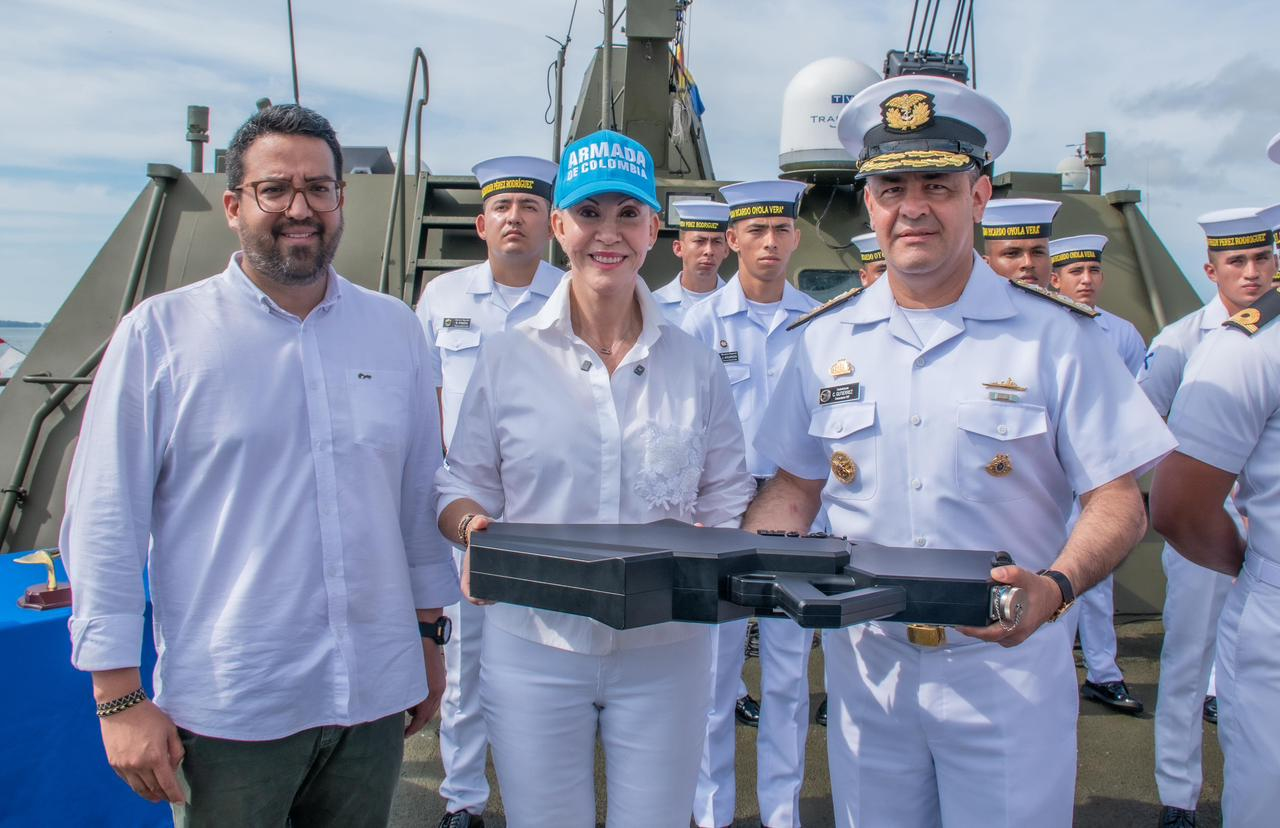 “Durante el último año, la Armada Nacional ha sido blancos de ataques con explosivos lanzados desde drones. Por eso, desde la Gobernación del Valle del Cauca, hemos destinado una inversión de mil millones de pesos para la adquisición de un sistema antidrones, fundamental para fortalecer las labores de vigilancia y control fluvial y marítimo en nuestro departamento. Este sistema ya fue instalado en una de las embarcaciones de la Fuerza Naval del Pacífico”, afirmó la mandataria de los vallecaucanos.