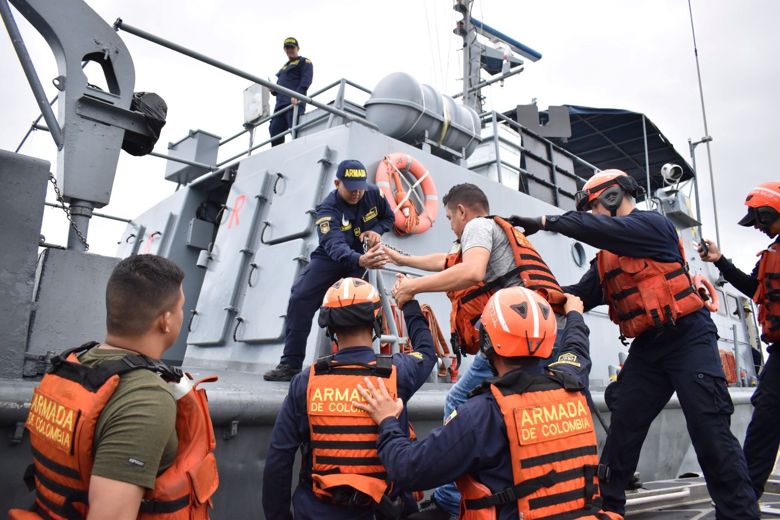 Mientras que en el Centro Nacional de Monitoreo y Vigilancia de la Autoridad Marítima Colombiana en Bogotá, se hizo el seguimiento permanente y se coordinaron las acciones interinstitucionales con las entidades públicas y privadas que apoyaron la ejecución de la MRO en el mar.