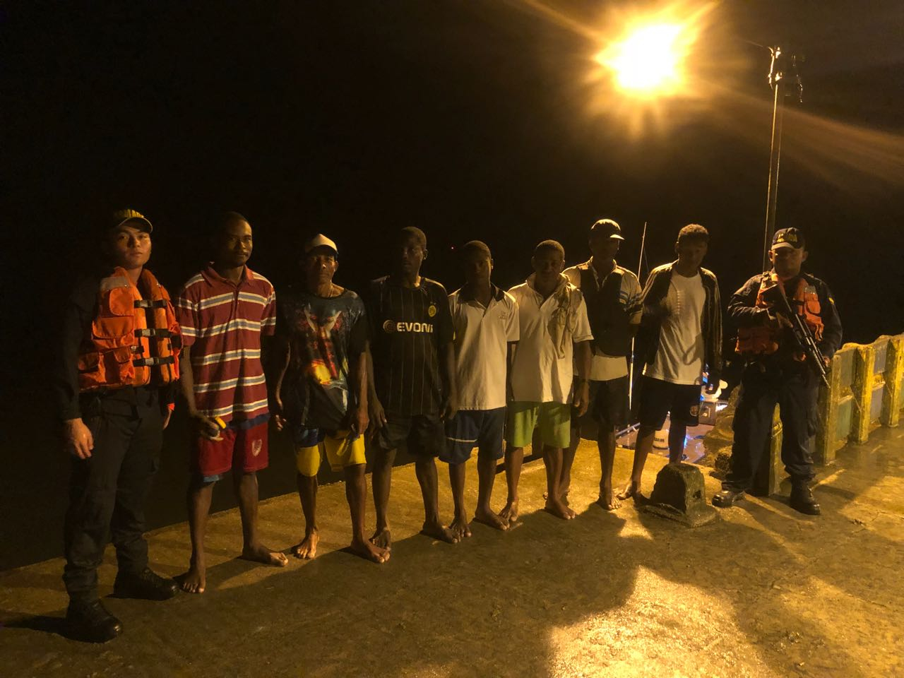 El personal de la Armada Nacional localizó los seis pescadores y los rescató del agua, transportándolos hasta el muelle de Juanchaco donde manifestaron que tenían contusiones y algunos golpes. En el lugar, se recogió el pescador que había nadado hasta la playa y posteriormente, fueron trasladados hasta el puerto de Buenaventura, donde fueron llevados a bordo de una ambulancia hasta un centro médico, para brindarles atención médica.