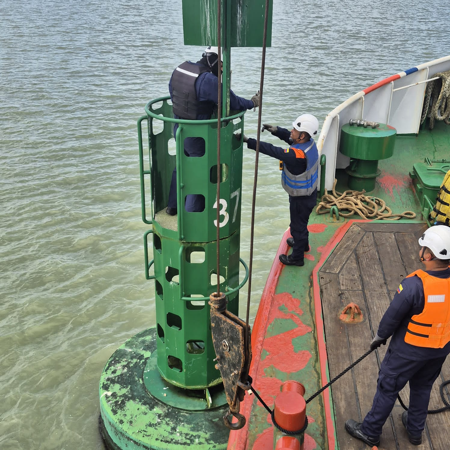 Para la ejecución de estas complejas maniobras de izado y reposición, la autoridad cuenta con el apoyo del buque balizador ARC “Isla Palma”. Esta unidad especializada permite intervenir señales incluso en zonas de difícil acceso, asegurando que cada componente del sistema de balizamiento funcione bajo los requisitos técnicos exigidos.