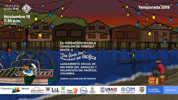 La agrupación infantil-juvenil Escuela Canalón presenta ‘Din Dirín Din’, su más reciente álbum de villancicos con sabor a Pacífico en el Teatro Colón. Son más de 30 niños y adolescentes que pondrán en escena un musical en el que se recreará la particular historia del nacimiento de niño Jesús, pero esta vez a orillas del río y el mar en algún lugar del Pacífico colombiano.