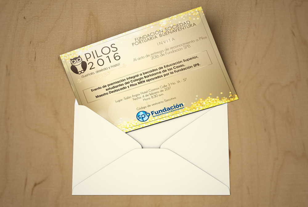 La Fundación Sociedad Portuaria Buenaventura, FSPB, realizará el próximo 4 de febrero Pilos 2016, reconocimiento anual con el objetivo de motivar a los estudiantes a superar sus metas académicas, con el fin de premiar de manera integral a becados de educación superior, estudiantes del Colegio Bartolomé de las Casas, Maestro Destacado y Pilos MEN apoyados por la Fundación SPB y Fundación Color de Colombia.