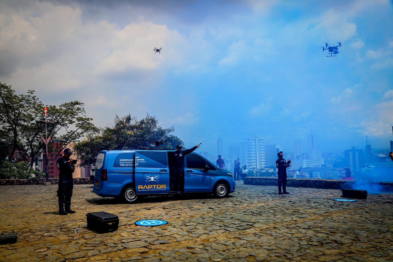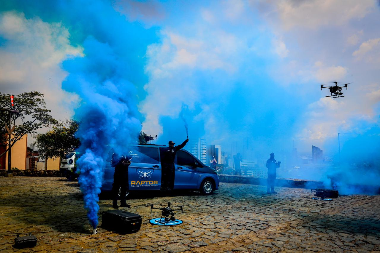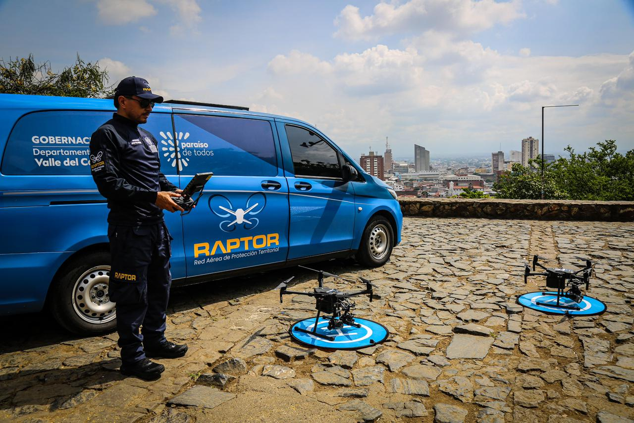 El coronel (R) Diego Calvo, director del Centro de Gestión de Emergencias y Seguridad del Valle del Cauca (CGES), señaló que el Raptor está compuesto por cuatro drones de alta tecnología equipados con cámaras 4K, visión infrarroja y capacidad de detección de calor. “Esta herramienta está alineada al CGES, al Observatorio del Delito y a todas las entidades territoriales, y su fin principal es poder analizar los escenarios de inseguridad”, precisó.