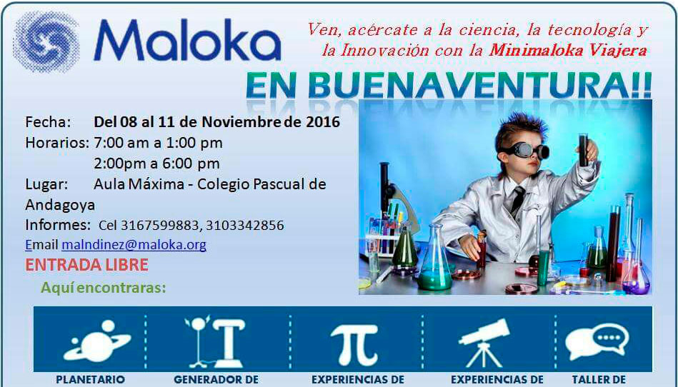Todos los bonaverenses están invitados a la presentación de la Mini Maloka Viajera, que estará en la ciudad entre los días 8 y 11 de noviembre del presente año, en la Institución Educativa Pascual de Andagoya.