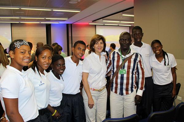 Los 10 niños y niñas intérpretes de currulao cantaron la canción ‘Mi Buenaventura’ para dar inicio al encuentro. Durante el mismo, Jean Marco De La Cuesta, representante del intercambio deportivo de atletismo que finalizó el lunes en Jamaica, agradeció en nombre de todos los jóvenes de Buenaventura al Presidente Santos y a la Ministra de Relaciones Exteriores, María Ángela Holguín Cuellar, por la iniciativa de diplomacia deportiva y cultural de Cancillería que conciben el deporte y la música como medios de inclusión social, diálogo intercultural y convivencia pacífica.