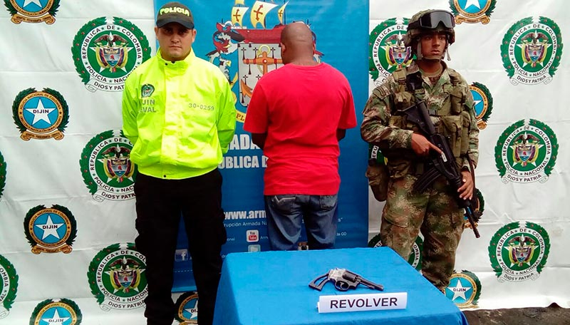 La operación se realizó en el barrio Antonio Nariño, en la comuna 11 del puerto de Buenaventura. Al momento de la captura el sujeto tenía en su poder un revolver Smith & Wesson y seis cartuchos de 38 mm.