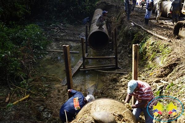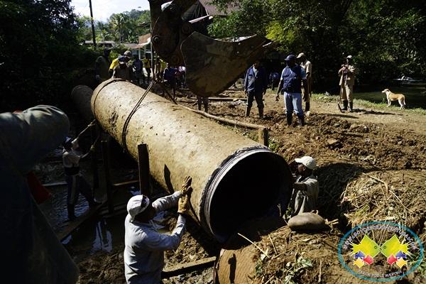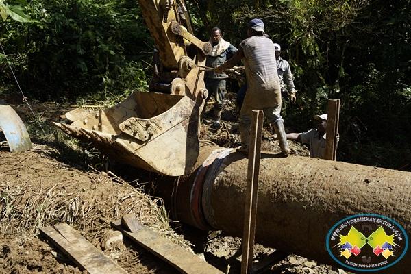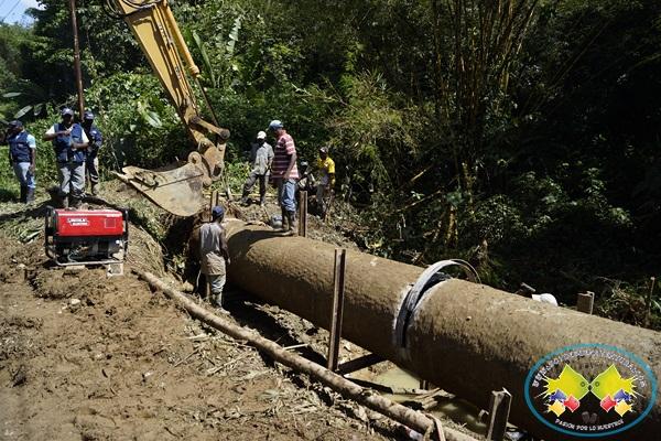 Gracias al buen tiempo en San Cipriano, se ha podido trabajar durante toda la noche y la mañana de hoy 23 de octubre, posibilitando que a esta hora el equipo dispuesto ya esté trabajando en soldar los empalmes de la tubería de 39 pulgadas, para luego proceder a las pruebas técnicas y de ser posible, iniciar el restablecimiento del servicio de agua paulatinamente, antes de la media noche.